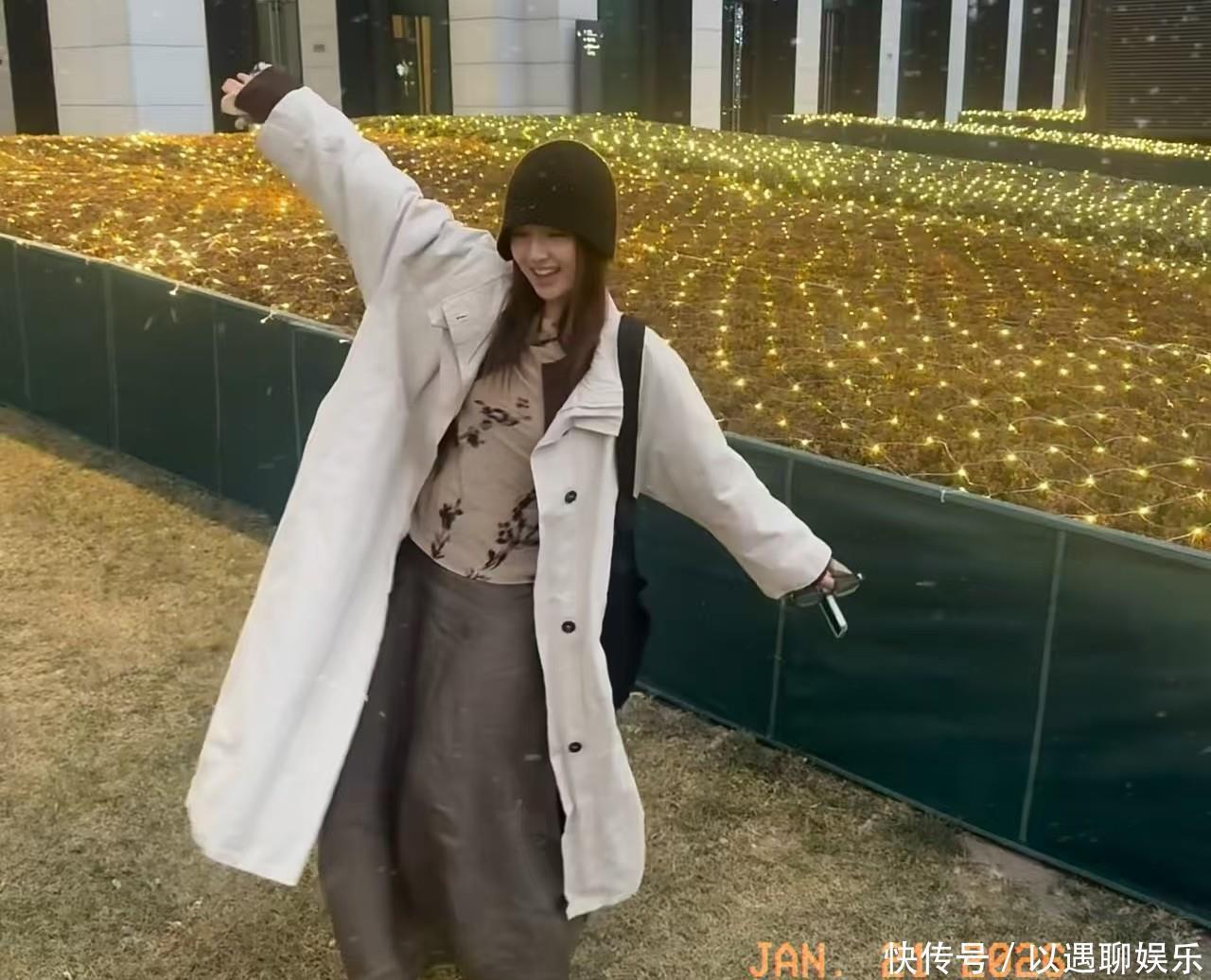 刷到李兰迪的初雪随拍,我一眼就盯上了她身上这件浅米色长款风衣——不是什么大牌新款,却把初雪天的松弛感穿到了极致。